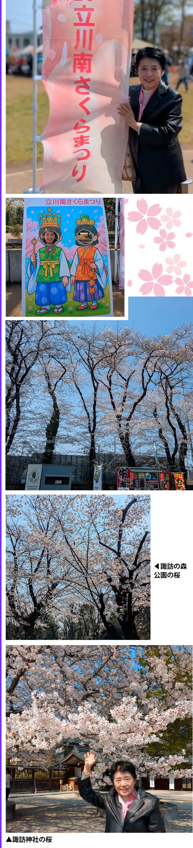 立川南さくらまつりが、私山下ようこの地元、立川市柴崎町の諏訪の森広場で開かれました。春うららかな絶好のお花見日和、広場にはキッチンカーやゲームコーナーなどが並び、多くの家族連れなどが年度末の週末を楽しみました。また広場に隣接する諏訪の森公園や諏訪神社のさくらも美しく、訪れた人達の多くがスマホやデジカメなどで写真を撮影していました