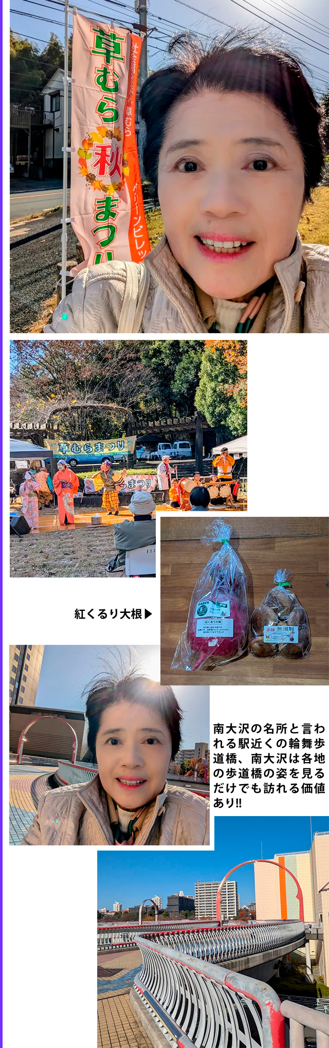 農福連携という理想の社会の構築に貢献する社会福祉法人草むらの草むらまつりが八王子市南大沢で開かれました。澄んだ青空のもと、ステージでは南大沢囃子連のお囃子、また法人の農園で収穫した野菜販売が大人気!!私山下ようこも椎茸と紫が美しい紅くるり大根を売り切れ前に購入することができました。