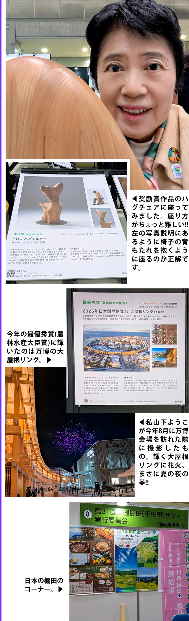 東京ビッグサイトSDGsウィークエコプロの続き。エコプロの毎年の楽しみの一つはウッドデザイン賞。木の製品の逸品が素晴らしい!!来年浜松で開かれる全国棚田サミットも興味深いですね。