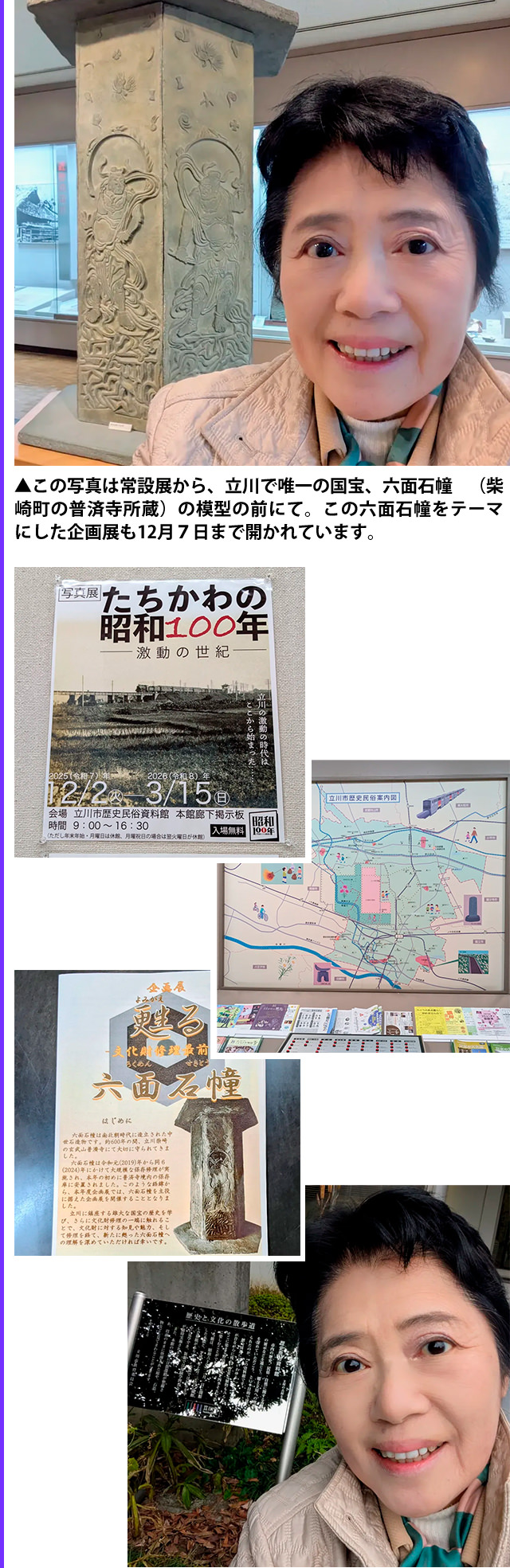 昨日12月1日は立川市の市制施行記念日、今から85年前の昭和15年、立川は町から市へと新たな歴史を刻み始めました。私山下ようこの子ども時代は「市民の日」として12月1日は学校がお休み。立川市民の特権を満喫しておりました!!その立川の立川市歴史民俗資料館 (市内富士見町)で今日、写真展たちかわの昭和100年が開幕!!早速、会場にお邪魔しました。立川を愛する人必見!!の写真展「たちかわの昭和100年」は来年3月15日まで開かれています。ぜひお出かけを!!
