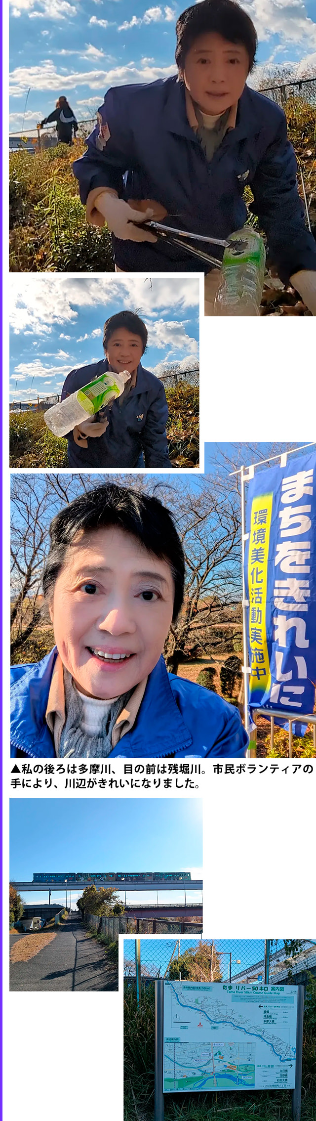 「多摩こそ命」の熱き心で活動している私山下ようこ、日野市の多摩川・浅川クリーン作戦に参加しました。場所は立日橋たもとの多摩川河川敷、約1時間、可燃ごみ不燃ごみに分けて拾い、いい汗をかいて、清々しい気分になりました。